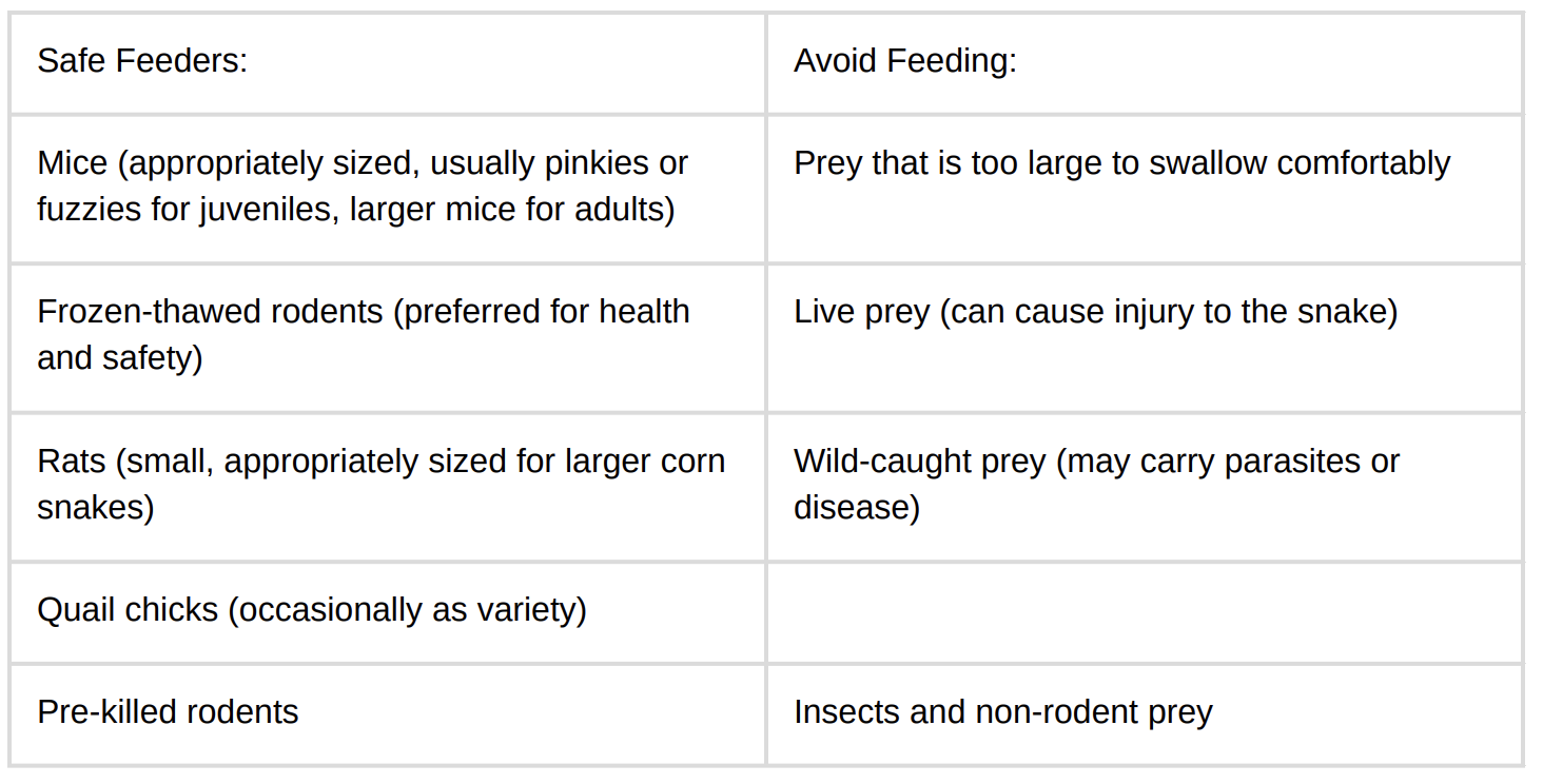 Note: Always ensure that the prey size does not exceed the diameter of the snake at its widest part. This helps prevent regurgitation and digestive issues.